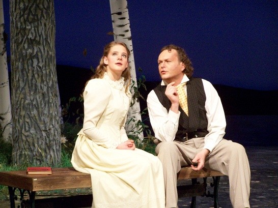 Nin and Trigorin chat by the lake.