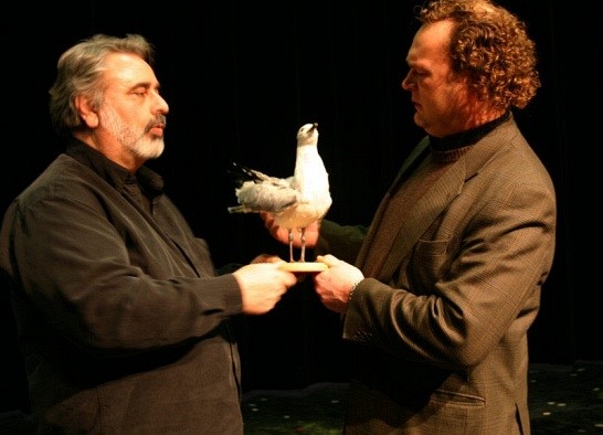 Rehearsal photo: Bill Horsman (Shamraev) and Dean Adema (Trigorin) with seagull