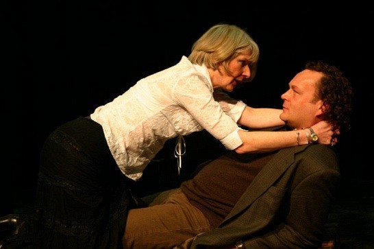 Rehearsal photo: Dean Adema (Trigorin) and Bev Brooks (Arkadina)